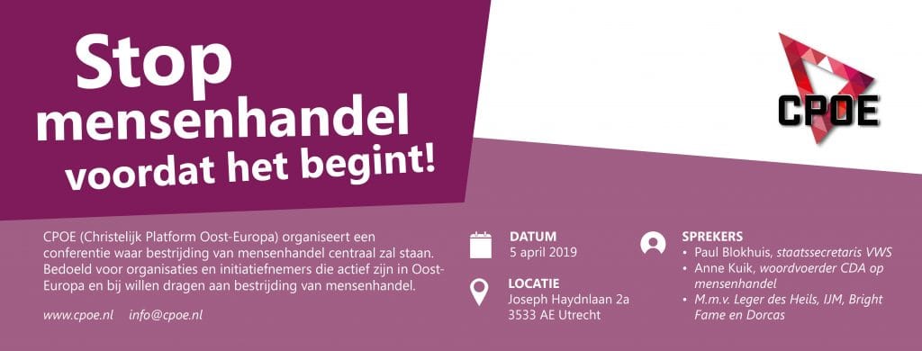 CPOE organiseert een conferentie waar bestrijding van mensenhandel centraal zal staan. Bedoeld voor organisaties en initiatiefnemers die actief zijn in Oost-Europa en bij willen dragen aan bestrijding van mensenhandel.