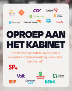 Wij maken ons grote zorgen over de toename van geweld, ongelijkheid en crises in de wereld. Daarom roepen wij, een brede groep van politieke partijen en maatschappelijke organisaties, het kabinet op om écht te investeren in ontwikkelingssamenwerking en een einde te maken aan de historisch grote bezuinigingen.